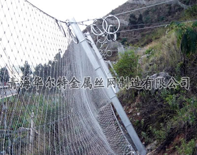 被動防護網(wǎng)是由鋼絲繩網(wǎng)、環(huán)形網(wǎng)、固定系統(tǒng)、減壓環(huán)和鋼柱四個主要部分構(gòu)成。鋼柱和鋼絲繩網(wǎng)連接組合構(gòu)成*個整體,對所防護的區(qū)域形成面防護,從而阻止崩塌巖石土體的下墜,起到邊坡防護作用。